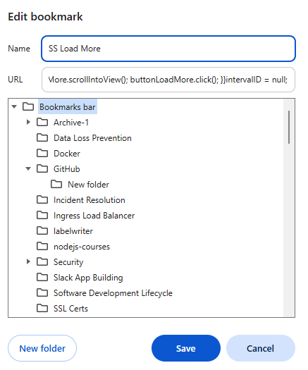 Below is the code for a bookmarklet that does exactly what I’ve described (the instructions for adding it to Chrome are above). It scrolls down the page and then clicks the “Load More” button until all the comments are expanded and the button disappears. Then it notifies you it’s done onscreen.