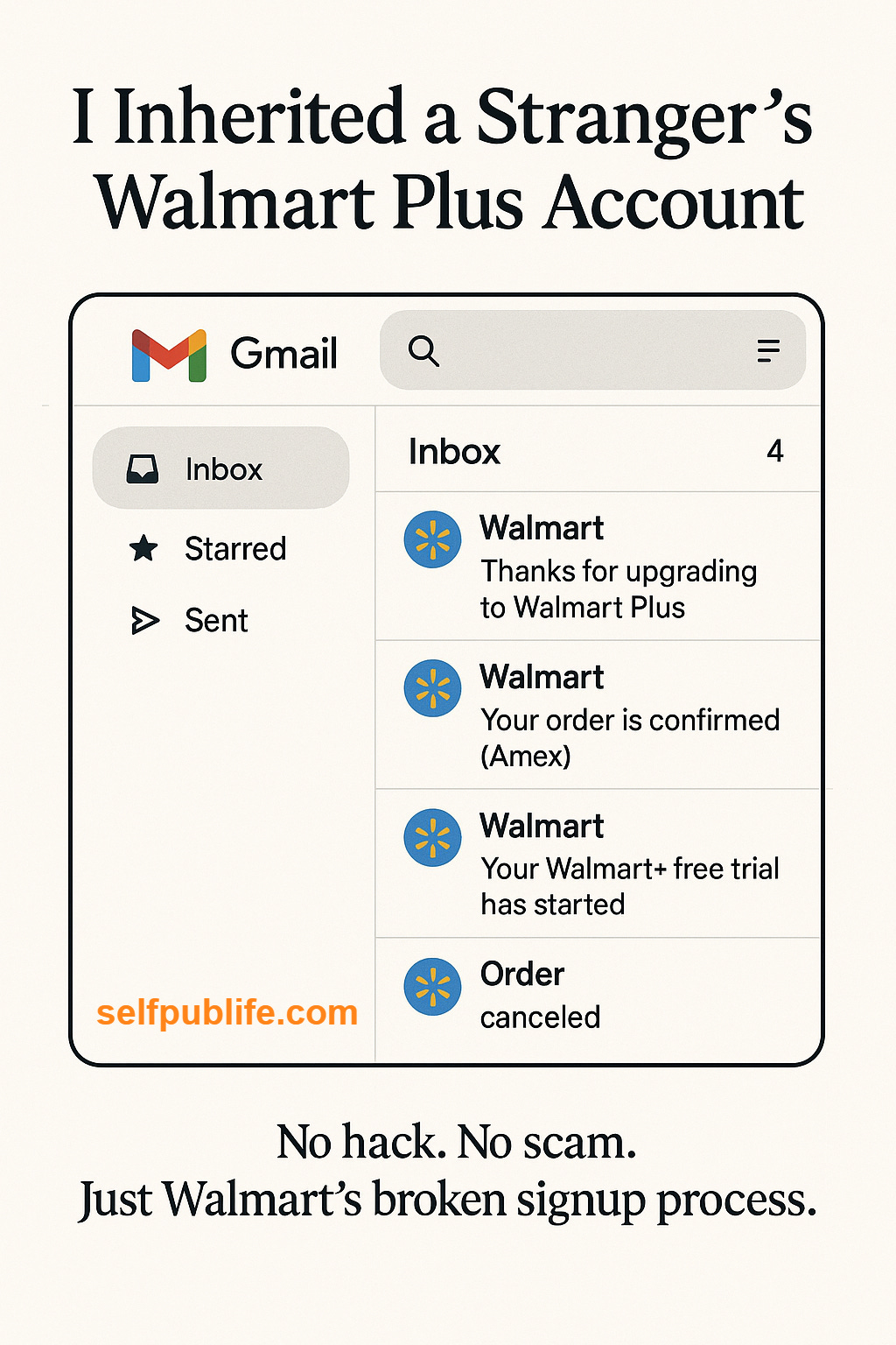 Someone with the same name as me signed up for Walmart Plus (paid with free trial) and mistyped their Gmail address. For all I know, they may have meant to use a Yahoo! address. Unfortunately, his “wrong” email turned out to be a Gmail variant of mine.