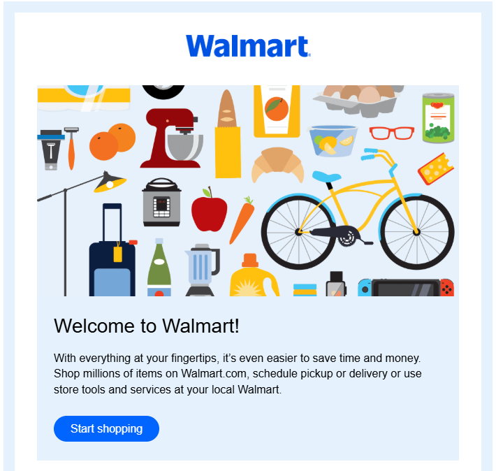 No email confirmation. Walmart didn’t ask me (or him) to verify the email. Just, “Welcome aboard, dude, go ahead and drop in your credit card.” Never mind that all account related emails will go to someone else and they will be able to log into your account, change the password, etc.